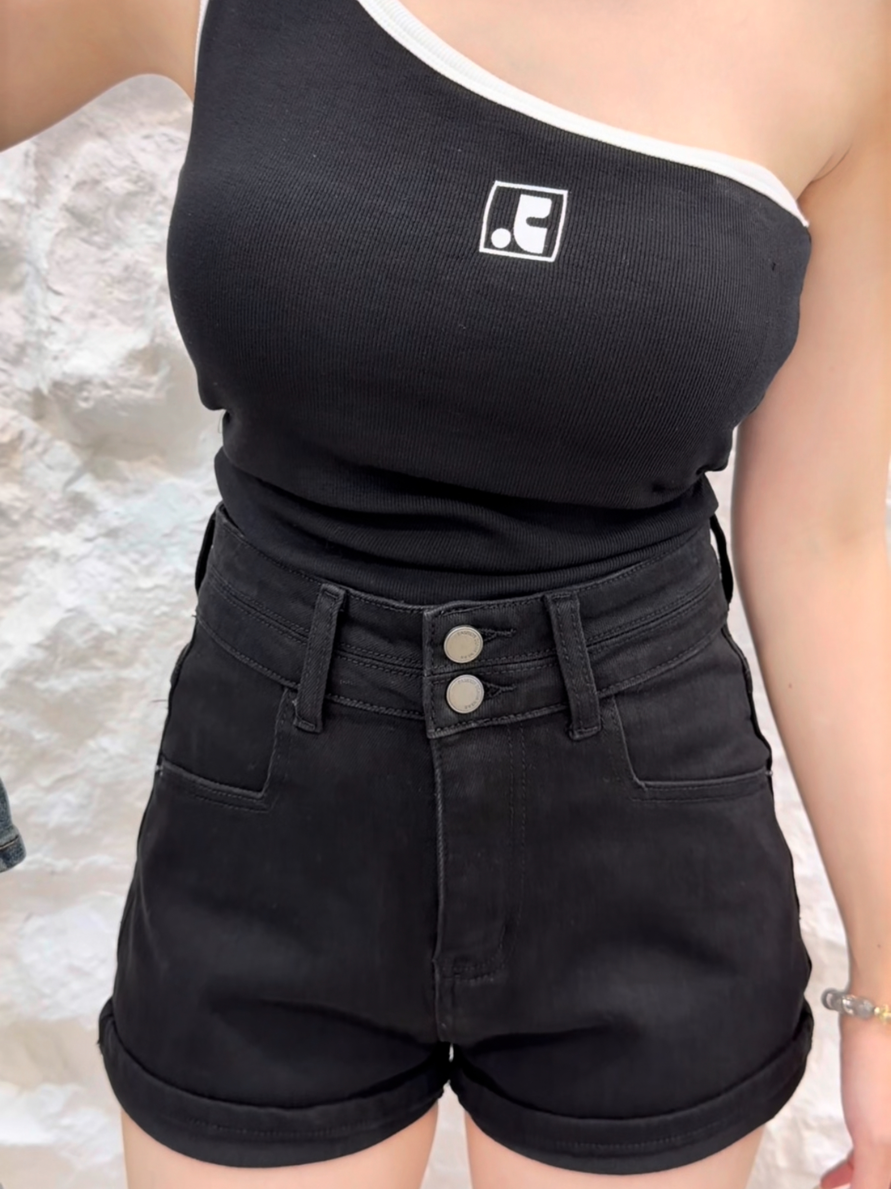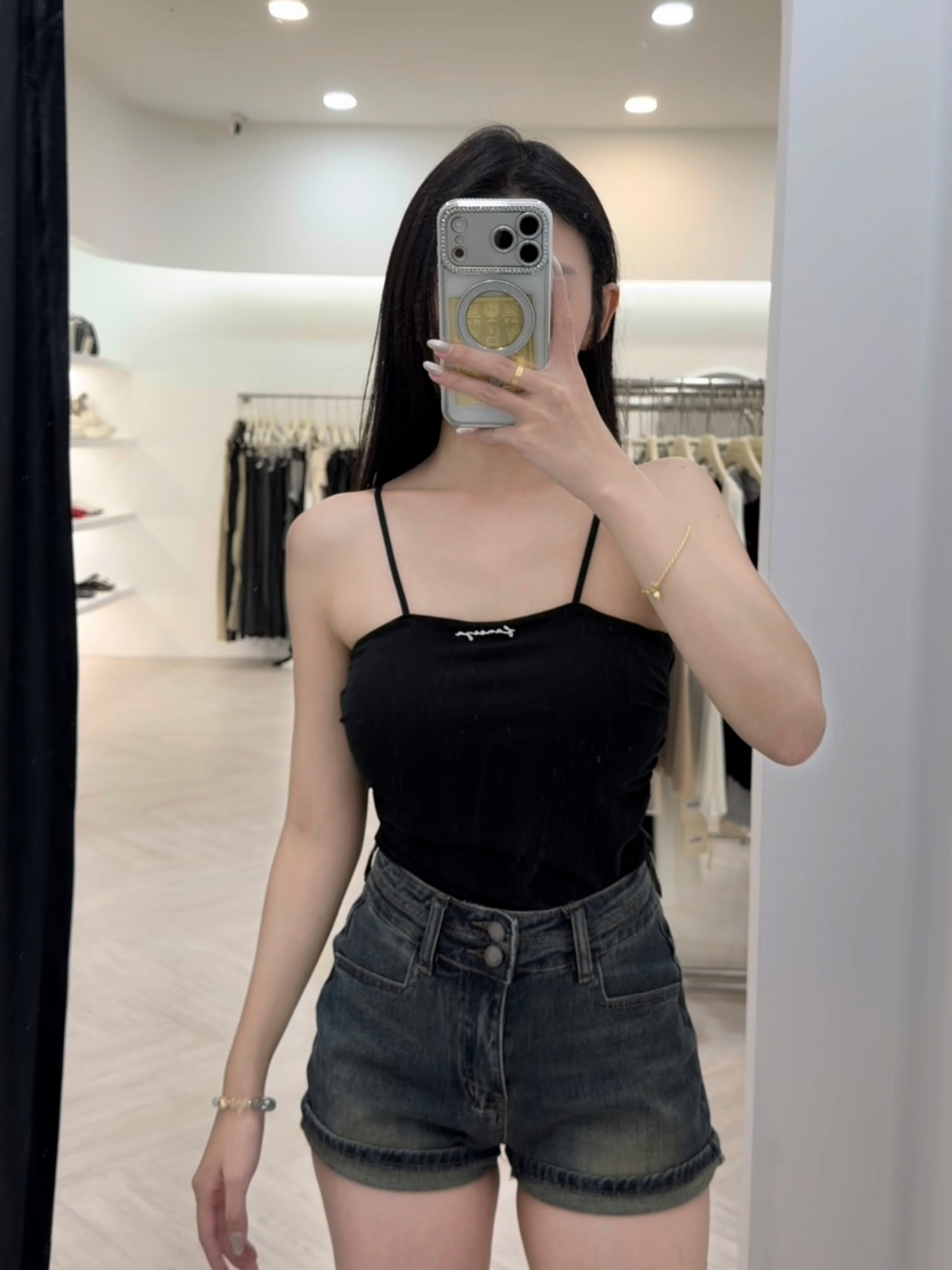 辣妹毛边牛仔抹胸上衣+高腰包臀短裙