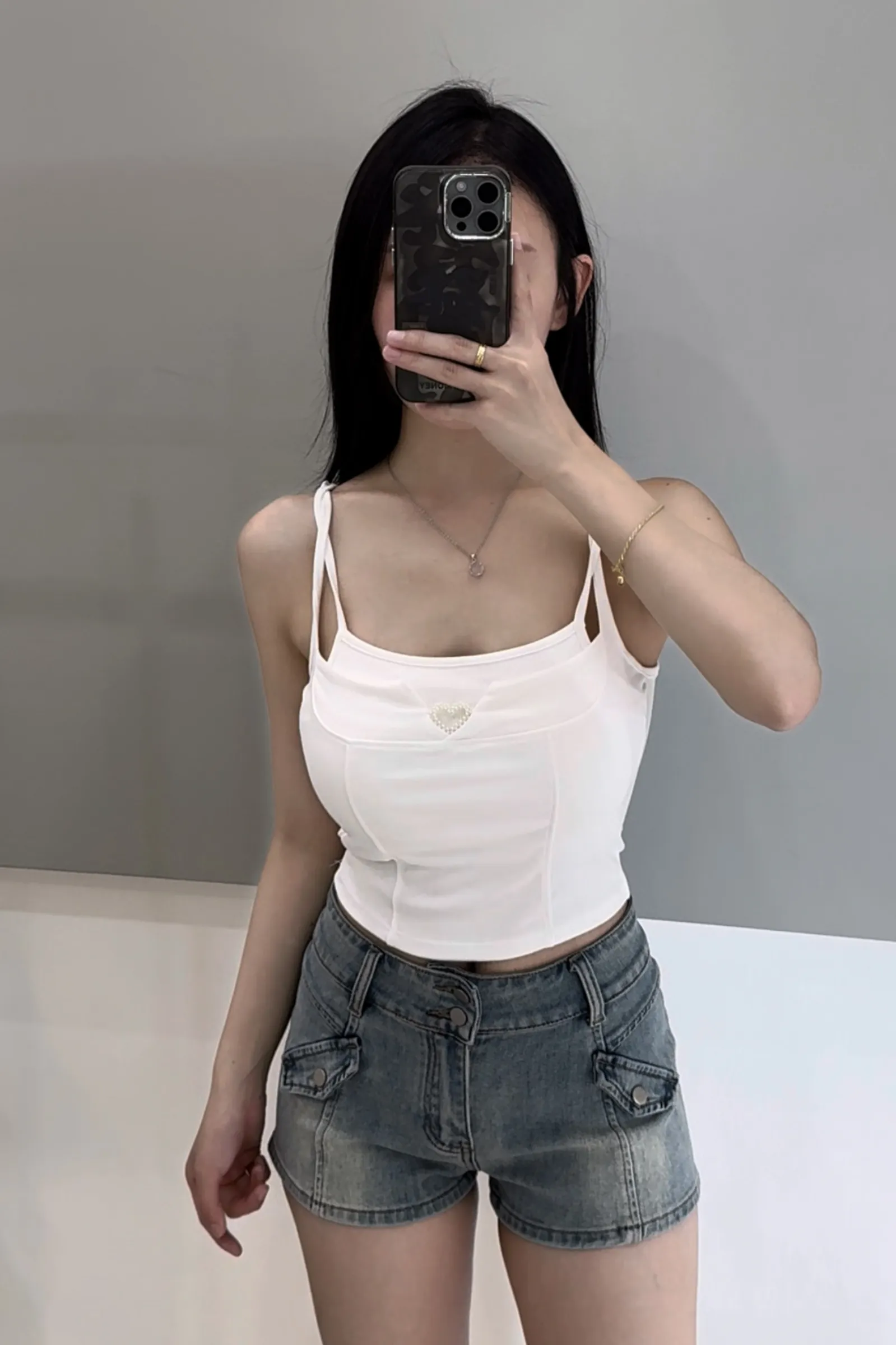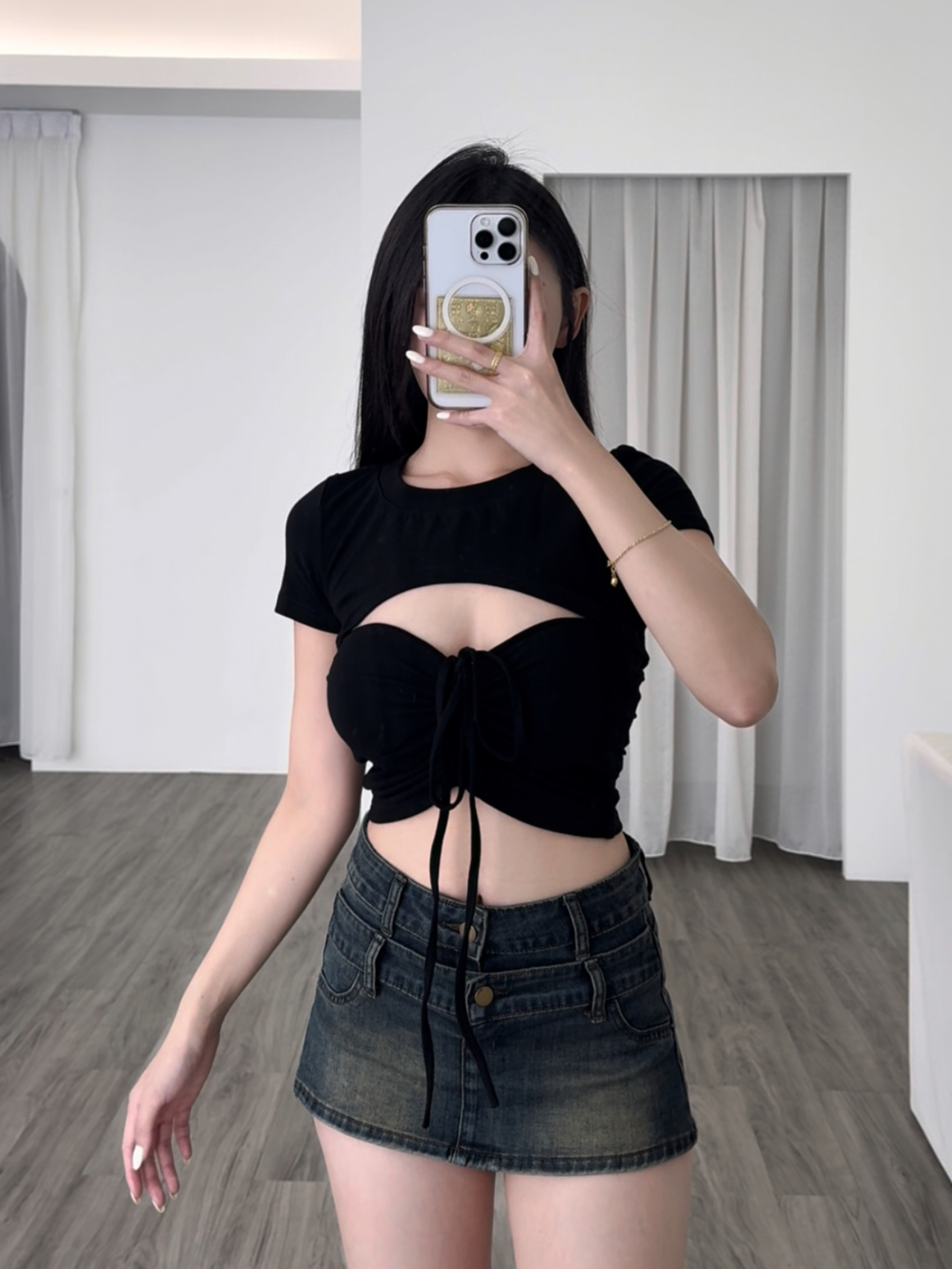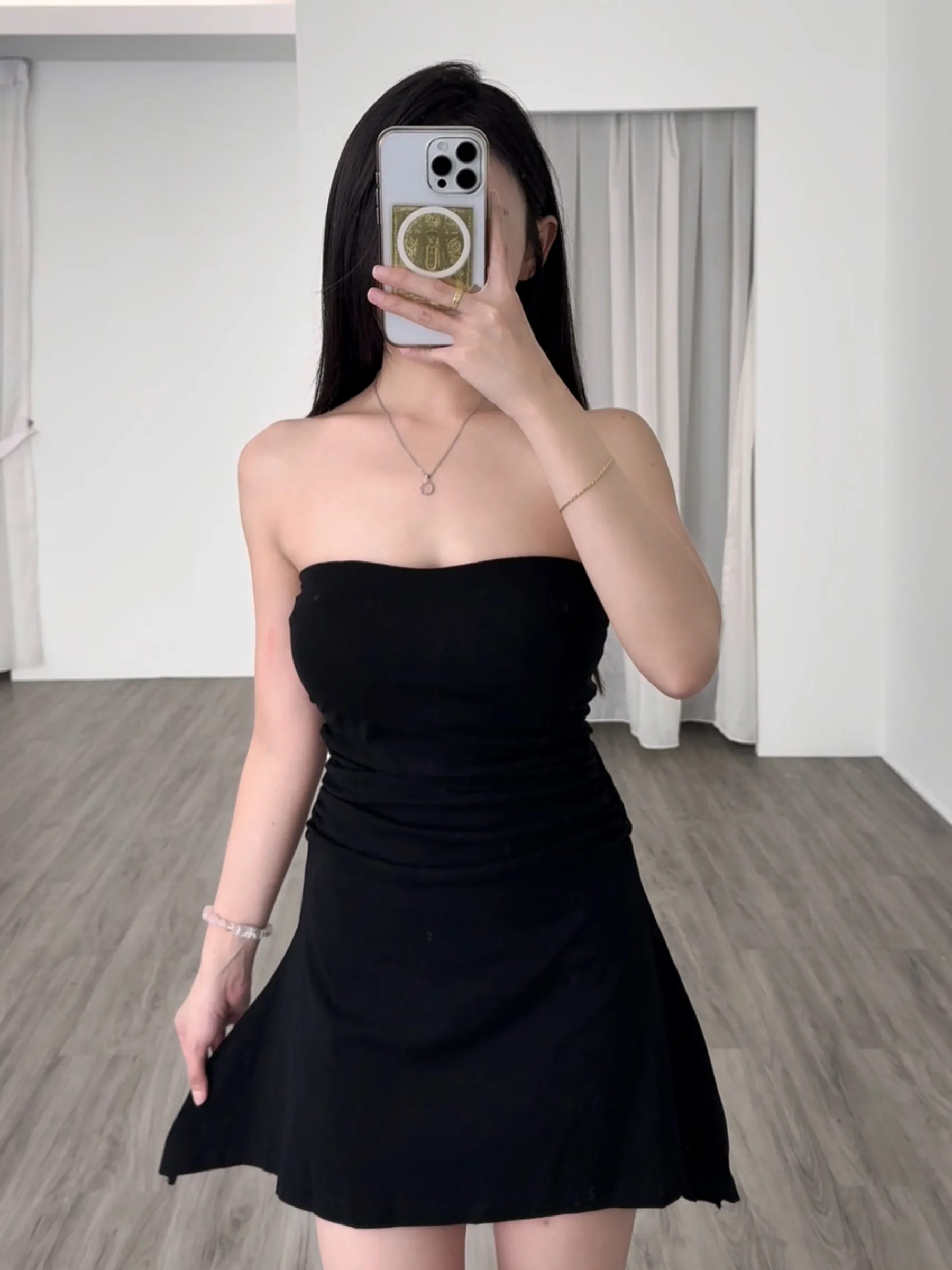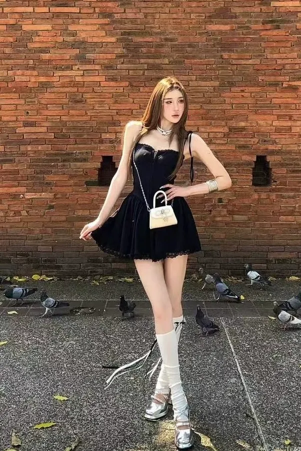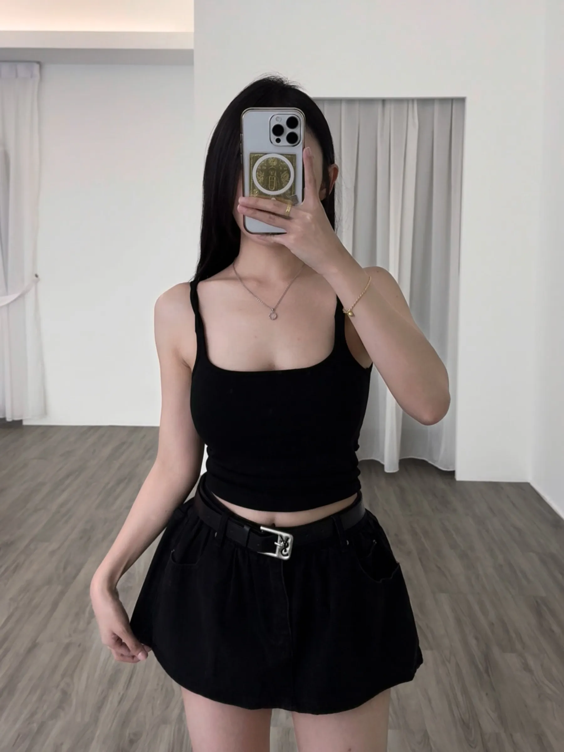 性感露锁骨吊带背心高腰蛋糕裙套装