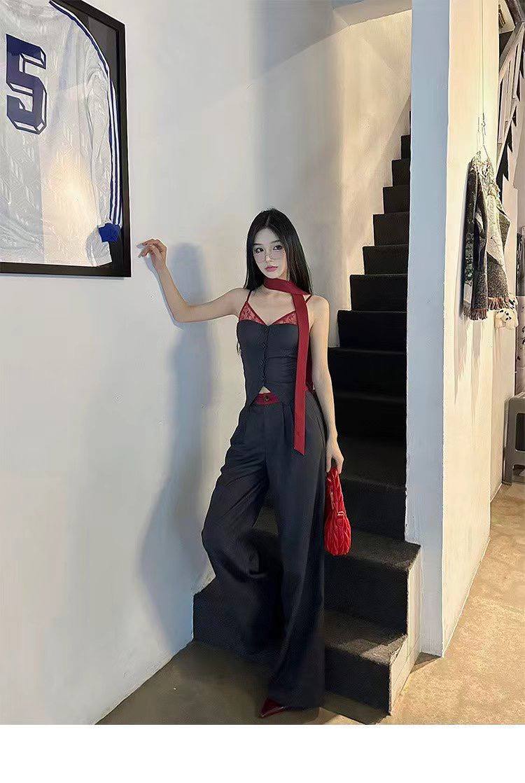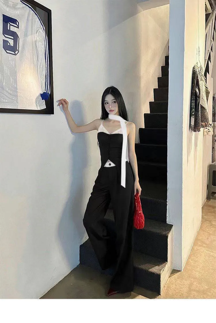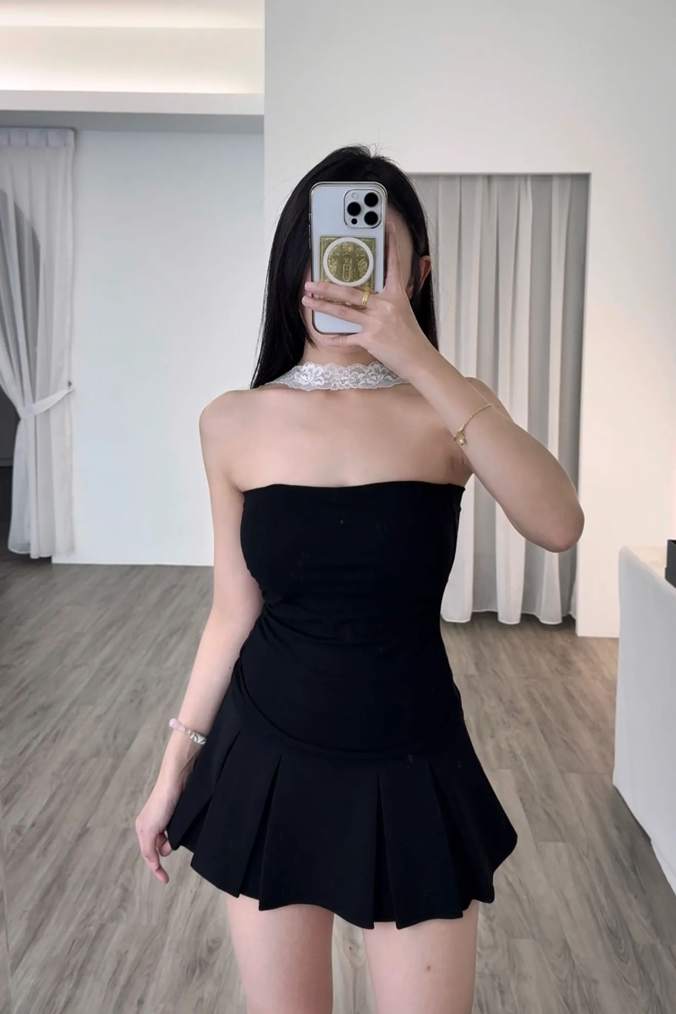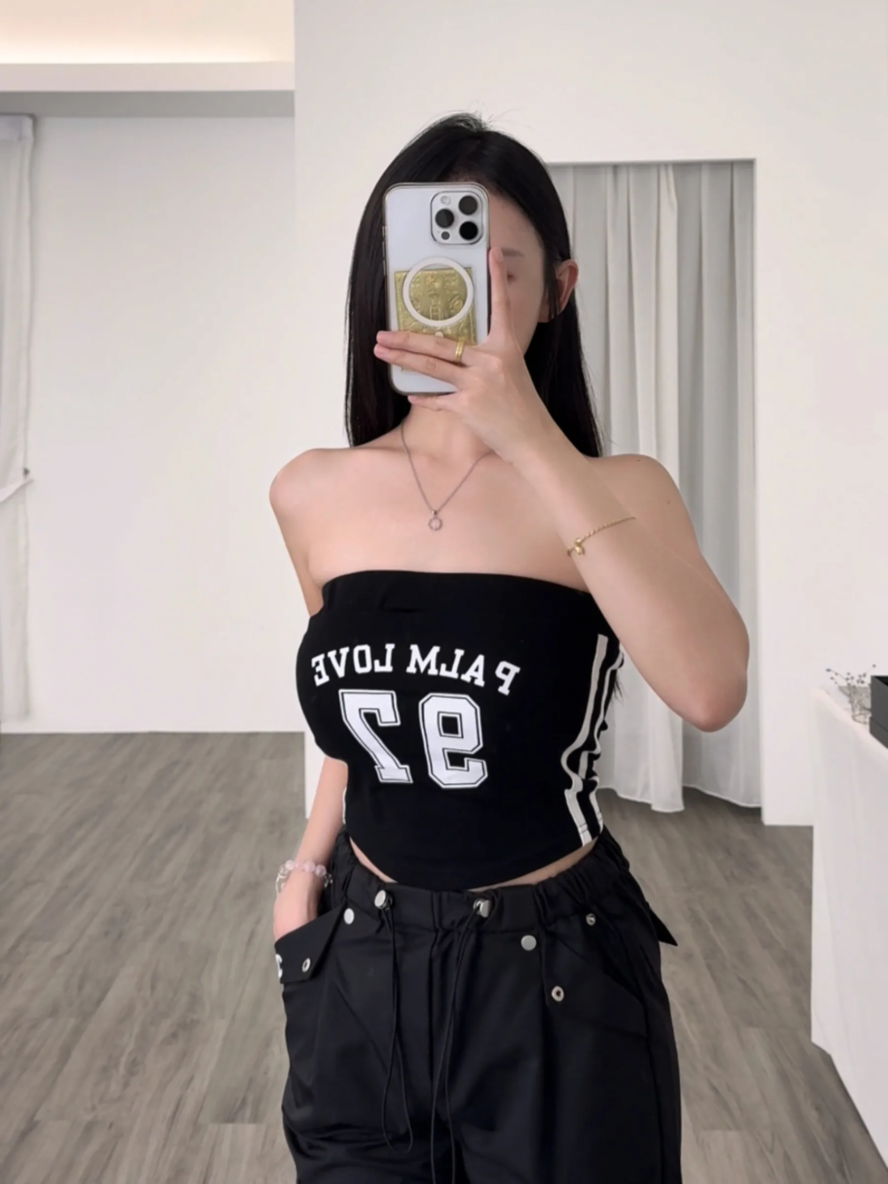 挂脖抹胸蓬蓬裙裤泡泡袖套装