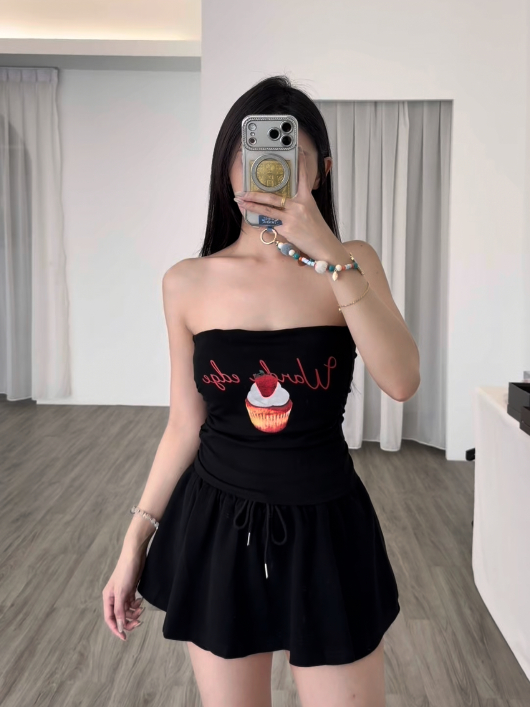 高级缎面抹胸蝴蝶结甜美连衣裙