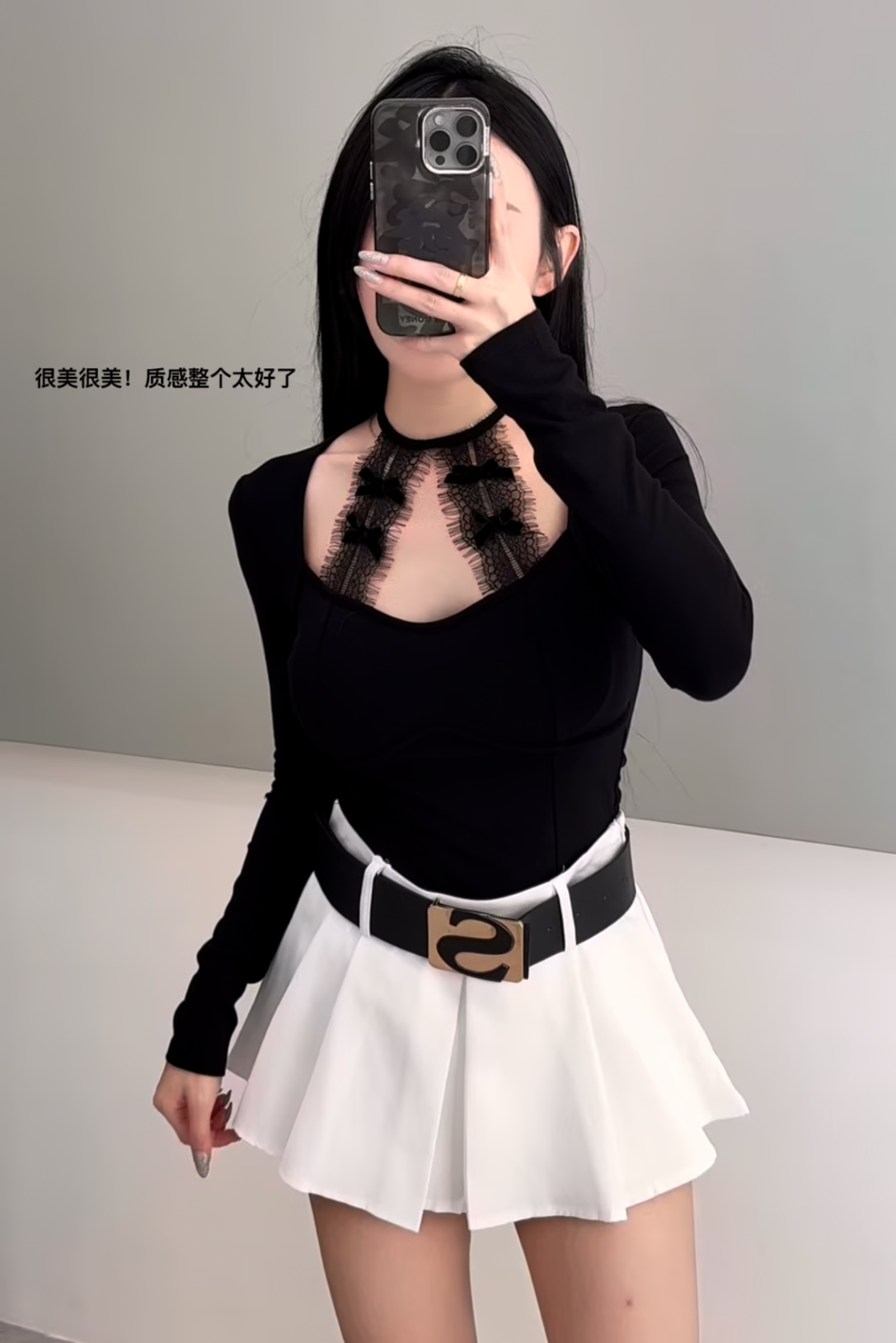 纯欲蕾丝边短裙套装