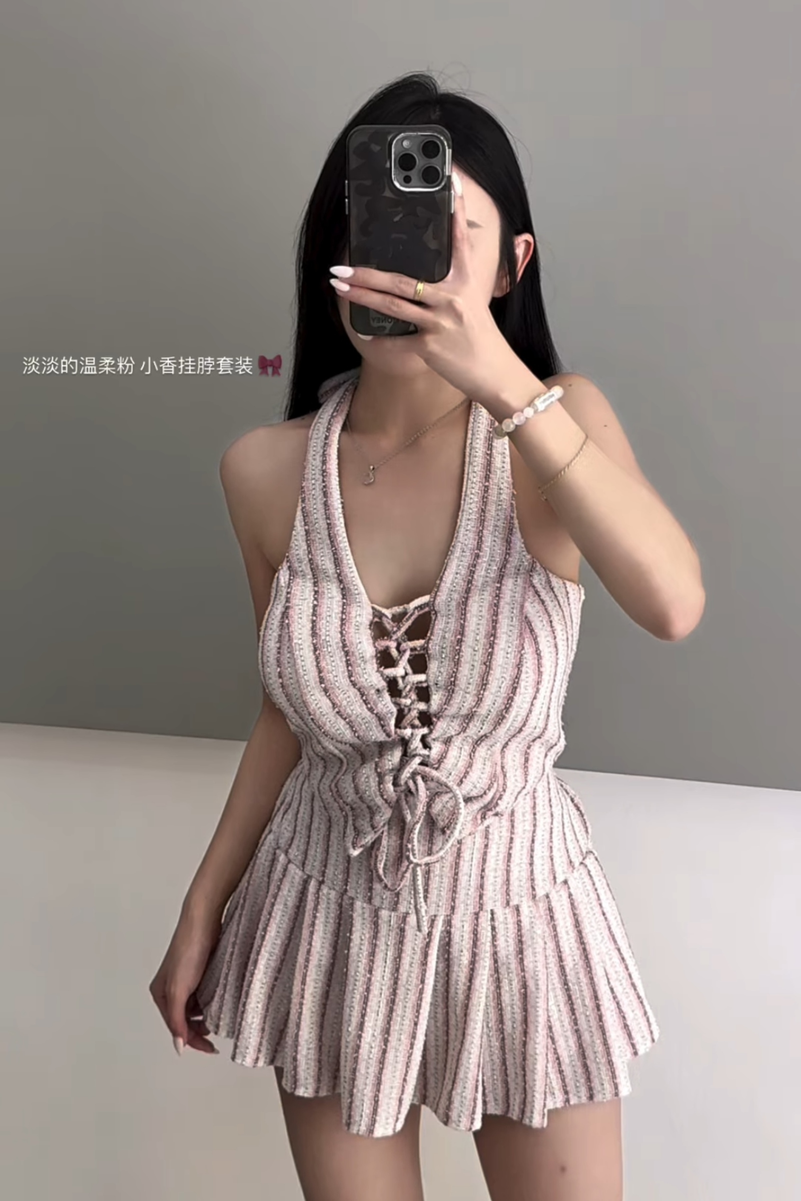 高定条纹吊带套装