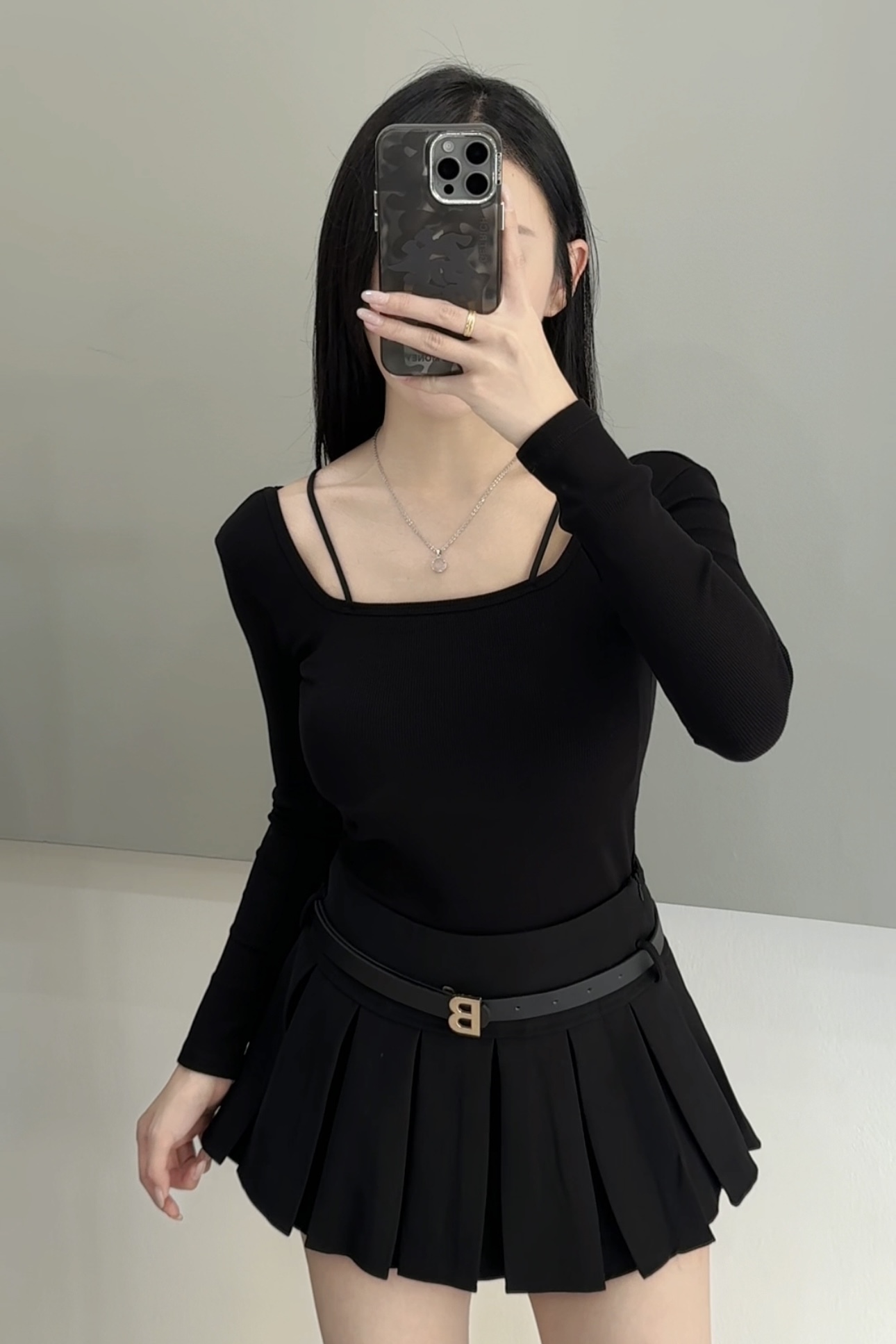 腰带西装半裙