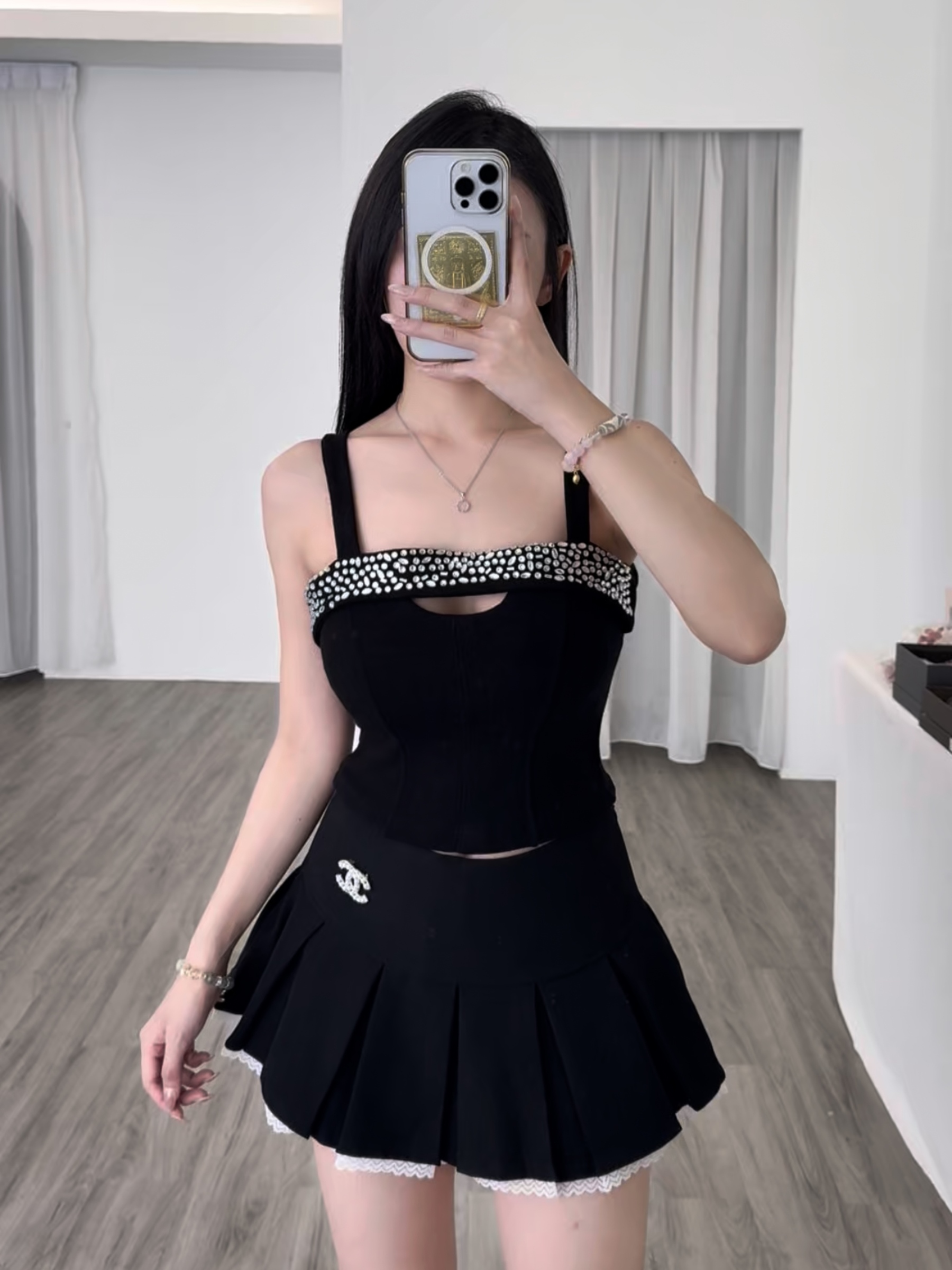 MIU带钻皱褶背心