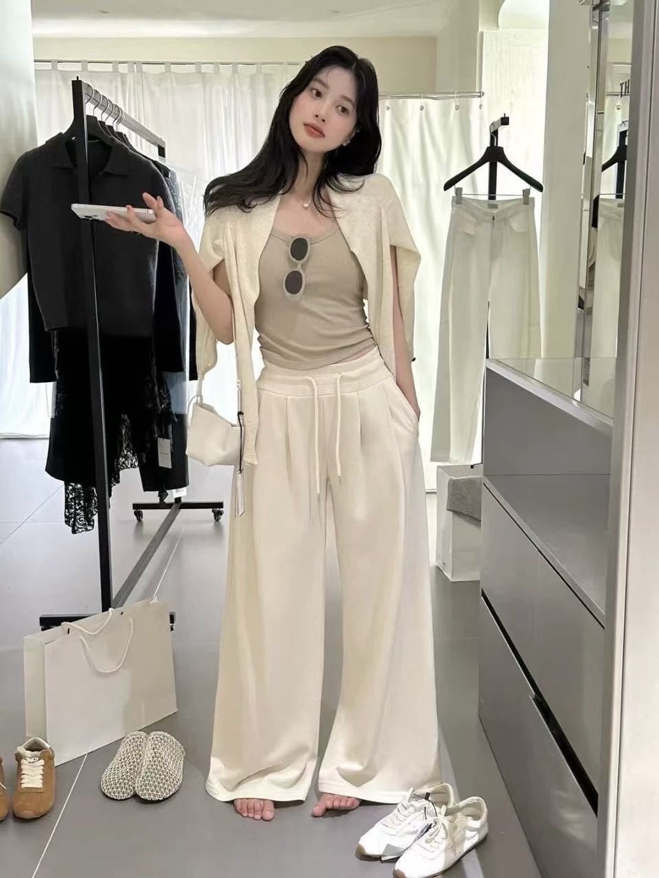休闲纯色长袖拉链卫衣直筒宽松裤套装
